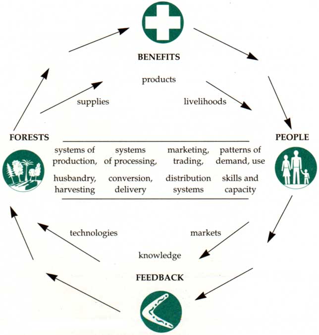 A systems approach to wood energy production and use means giving rein to 'feedback loops' linking forests, trees and people in a mutually supportive and interactive chain of benefits. Development policies and strategies should be aimed at enabling benefits and feedback to flow freely in both directions, to sustainable effect and in measured relation to topical circumstances.
