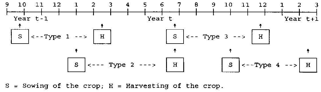 · TYPE 1: Crop is sown in the previous year (t-1) and harvested in the current year(t);