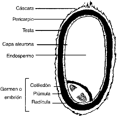La estructura de todos los granos de cereales (Figura 15) está compuesta por: