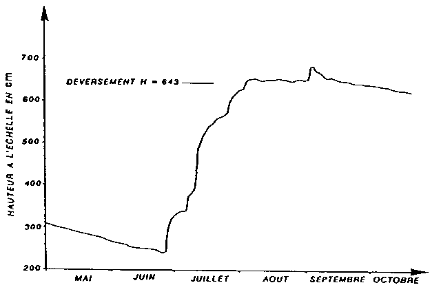 H hauteur d'eau dans la retenue, lue à l'échelle à la date indiquée (cf. figure 60);