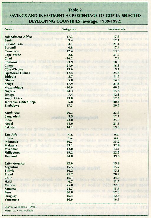 Table 2: SAVINGS AND INVESTMENT AS PERCENTAGE OF GDP IN SELECTED DEVELOPING COUNTRIES (average, 1989-1992)