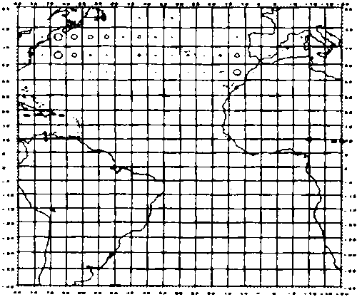 Figure 2. Geographical distribution of bluefin tuna catches by surface fisheries, average for 1983-93.