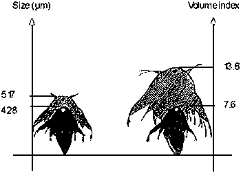 Figure 4.3.6. Schematic diagram of the biometrical variation in freshly-hatched instar I Artemia nauplii from different geographical origin (size =nauplius length; volume index = CoulterCounter)