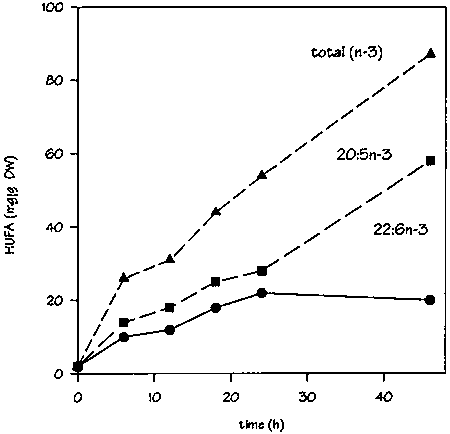 Until early 1988, culture trials with mahi-mahi larvae (Coryphaena hippurus) had only been successful when the larvae were fed natural copepods or other zooplankton; culture tests with newly-hatched Artemia not being successful at that time. However, In 1988 and 1989, significant progress in the larviculture of this fast-growing aquaculture species was achieved by various research groups in the U.S.A. and Australia. In particular, larvae fed Artemia enriched with high levels of (n-3)HUFA, and in particular DHA, resulted in more consistent larviculture outputs in terms of survival, larval growth, and health as compared to larvae cultured with other zooplankton as food.