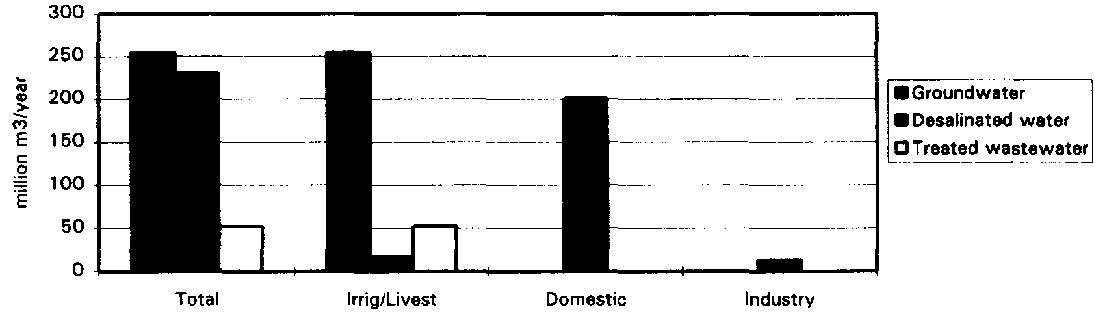 Desalinated water (231 million m³) was used mainly for domestic purposes and a smaller quantity for industry and for greenhouse irrigation (Figure 2). As far as the reuse of treated wastewater is concerned (52 million m³), a pilot farm was established in 1976, where secondary treated sewage water was initially used.