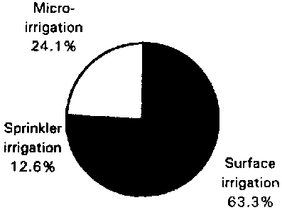 Figure 3 - Irrigation techniques f/p (total: 4 770 ha in 1994)