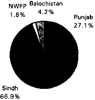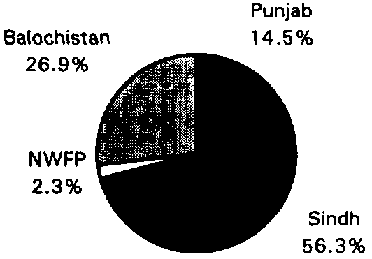 Pakistan, with a total area of 796 100 km², is located in Southern Asia. It is bordered by India in the east, China in the north-east, Afghanistan in the north and north-west, Iran in the south-west and the Arabian Sea to the south. Pakistan is divided into four provinces, namely the Punjab, Sindh, North West Frontier Province (NWFP) and Balochistan.