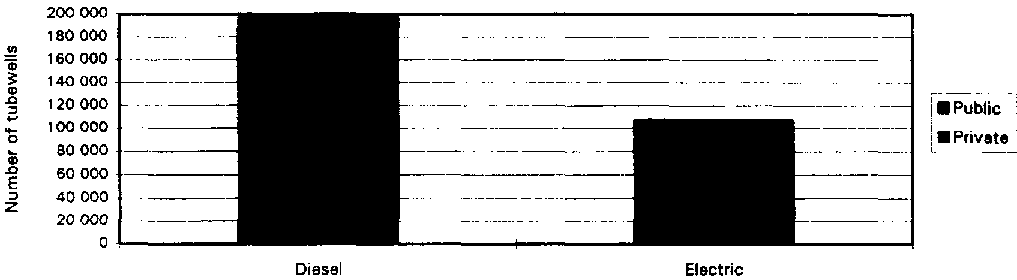In 1989, 305 231 tubewells were used for irrigation in Pakistan, most of them being privately owned and using diesel (Figure 6).
