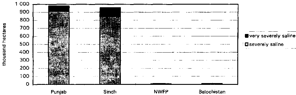 According to the Soil Survey of Pakistan (19851990), 1.78 million hectares are considered as severely saline, and 0.18 million hectares as very severely saline (Figure 10), but the survey does not indicate which part is due to irrigation. From 1959 onwards, about 50 Salinity Control and Reclamation Projects (SCARPs) have been initiated to provide a lasting solution to the problem of waterlogging and salinity through subsurface drainage.