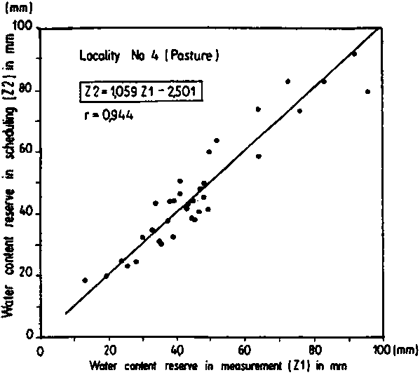 A comparison of the soil reserve values measured (Z1) and calculated using the BILANS program (Z2) for a pasture is shown in Figure 2.