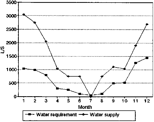 FIGURE 3 - Water irrigation requirement and water supply (1994)