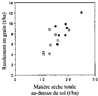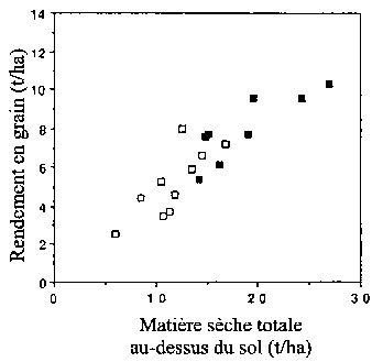 Figure 12.1. Graphique du rendement simulé en fonction de la biomasse simulée pour le site d'Amérique du Nord