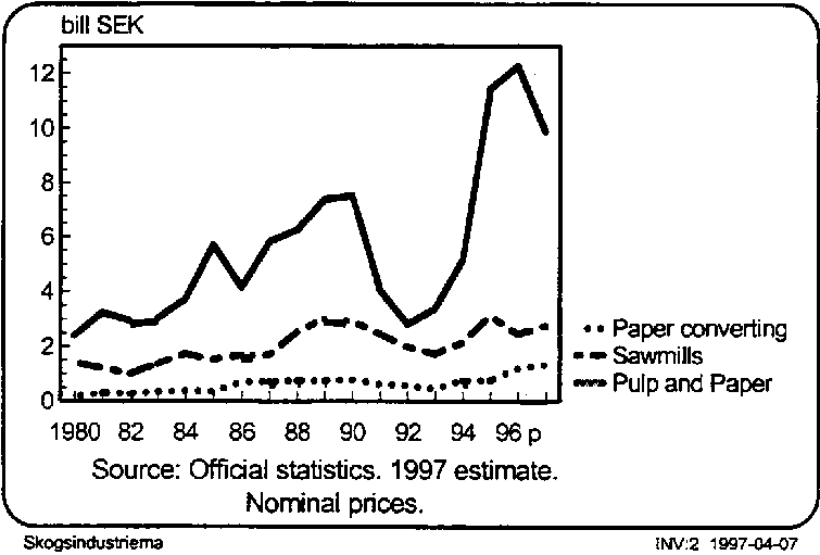 Investments in the Forest Industry, mills in Sweden, 1980-97