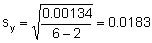 Now the standard deviations for the intercept a and slope b can be calculated with: