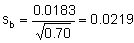 b = 0.626 ± 2.78 × 0.0219 = 0.626 ± 0.061