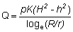 Theoretically, the flow of water into a well is given by the following Dupuit formula: