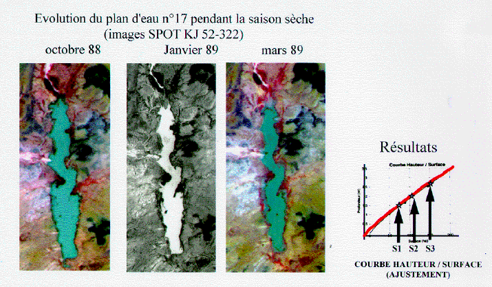 · des données satellite (trois images de la même saison sèche donnant trois surfaces en eau à trois dates),