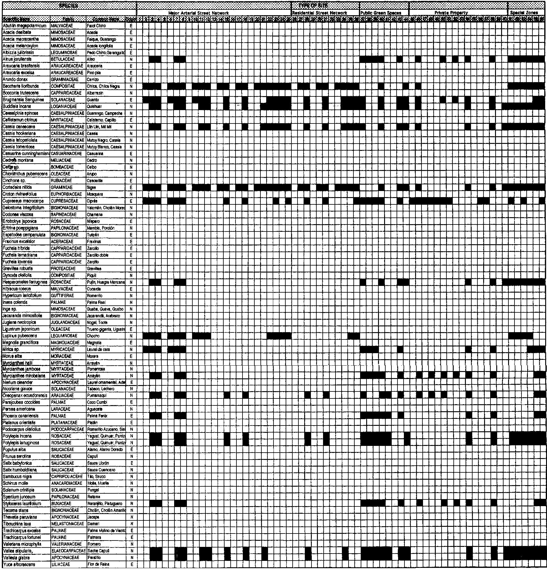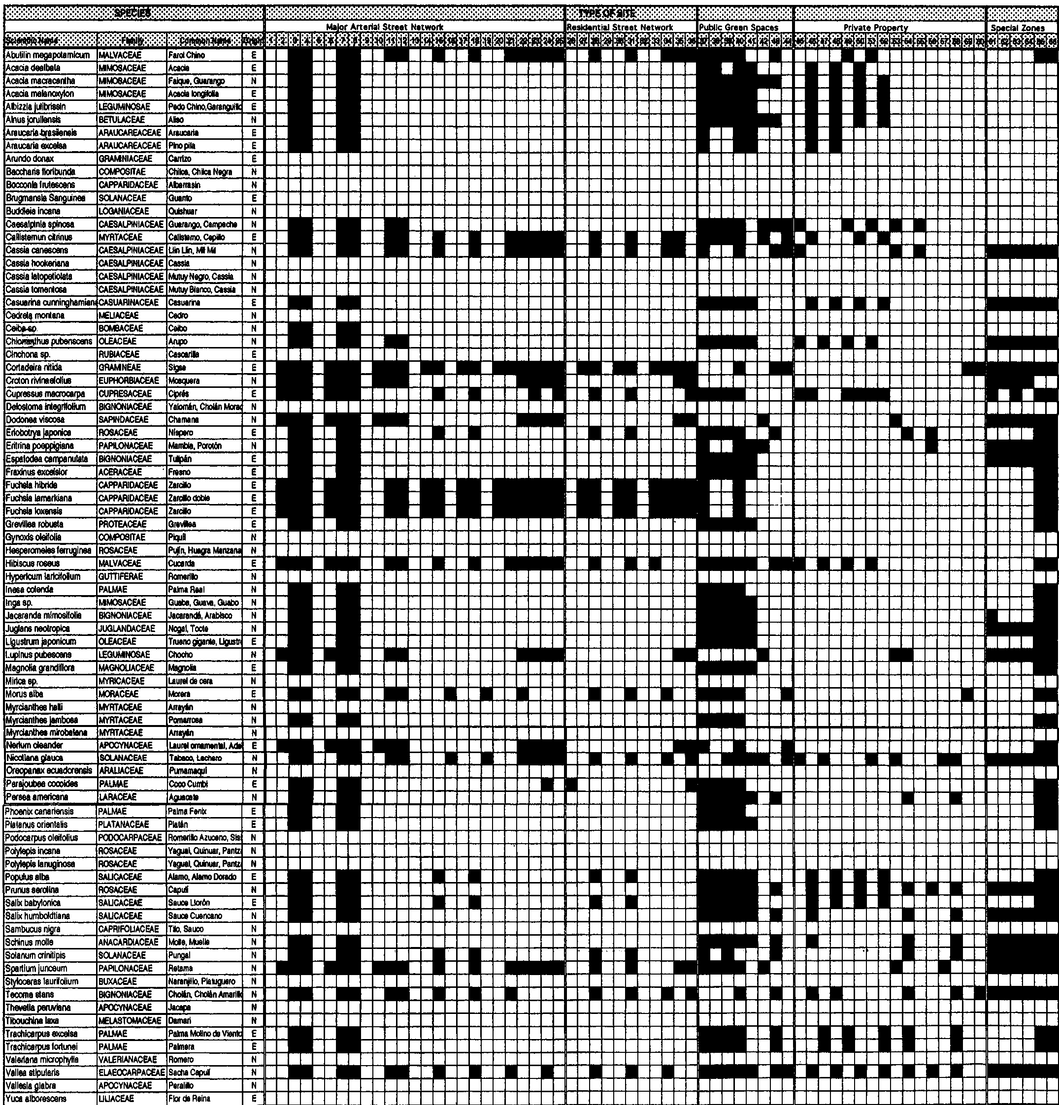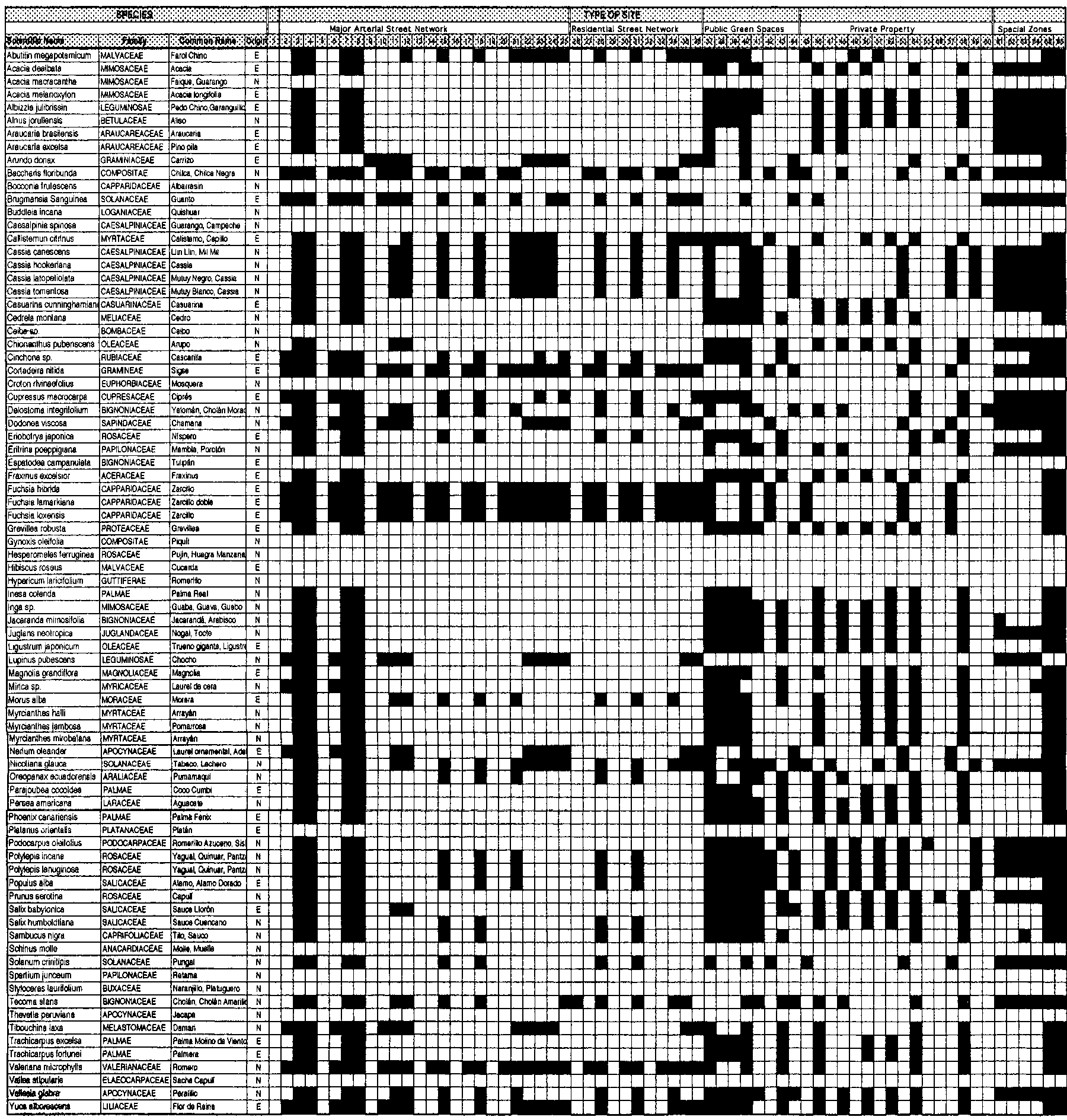 Table B.1 - WOODY SPECIES SUITABLE FOR PLANTING IN QUITO