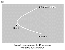 1 Birdsall y Sabot (1994) correlacionan el perfil de distribución de ingresos con el crecimiento económico, demostrando, en consonancia con los planteamientos de Chenery, que una fuerte desigualdad limitaría a largo plazo el crecimiento económico de un país. Comparando la República de Corea con Brasil, los autores afirman que si este último país hubiese tenido un perfil de renta menos concentrado, su crecimiento habría podido aumentar en alrededor de un 17,2 por ciento en los últimos 25 años.