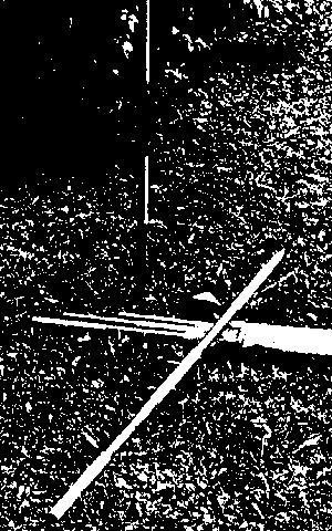 a) Use intermediate points for the clinometer and the target without driving in stakes. This simple method is mainly used for crossing small ridges. During the compass survey the target is elevated above the invisible point until it is visible.b) If the target is visible from a slightly higher clinometer point, the pole is put at this point and the clinometer is moved down along the pole until the correct reading is found. Then the clinometer is fixed by hand at this height on the pole, and the target is adjusted downward (to 0 percent). The foot point of the target pole is the correct point. This method is used to pass by big trees or other obstacles.