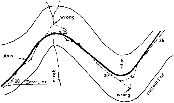 FIGURE 34 Zero Line and Centre Line of a Switchback -Average distance of the stakes 20-25 m