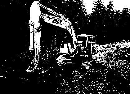 Photo Wood residues and organic top soil will removed in front of the machine and spread on the rear fill slope