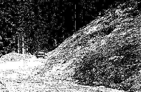Photo. Fill construction is one of the most responsible duty in proper road construction - one can see the separated materials piled hillside