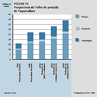 5 J.F. Muir. 1995. Tendances du développement de l'aquaculture: perspectives pour la sécurité alimentaire. Document présenté à la Conférence internationale sur la contribution durable des pêches à la sécurité alimentaire organisée par le Gouvernement du Japon et la FAO, Kyoto, Japon, 4-9 décembre 1995; et FAO. 1997. Examen de la situation de l'aquaculture dans le monde. FAO, Circulaire sur les pêches no 886, Rév.1. Rome.