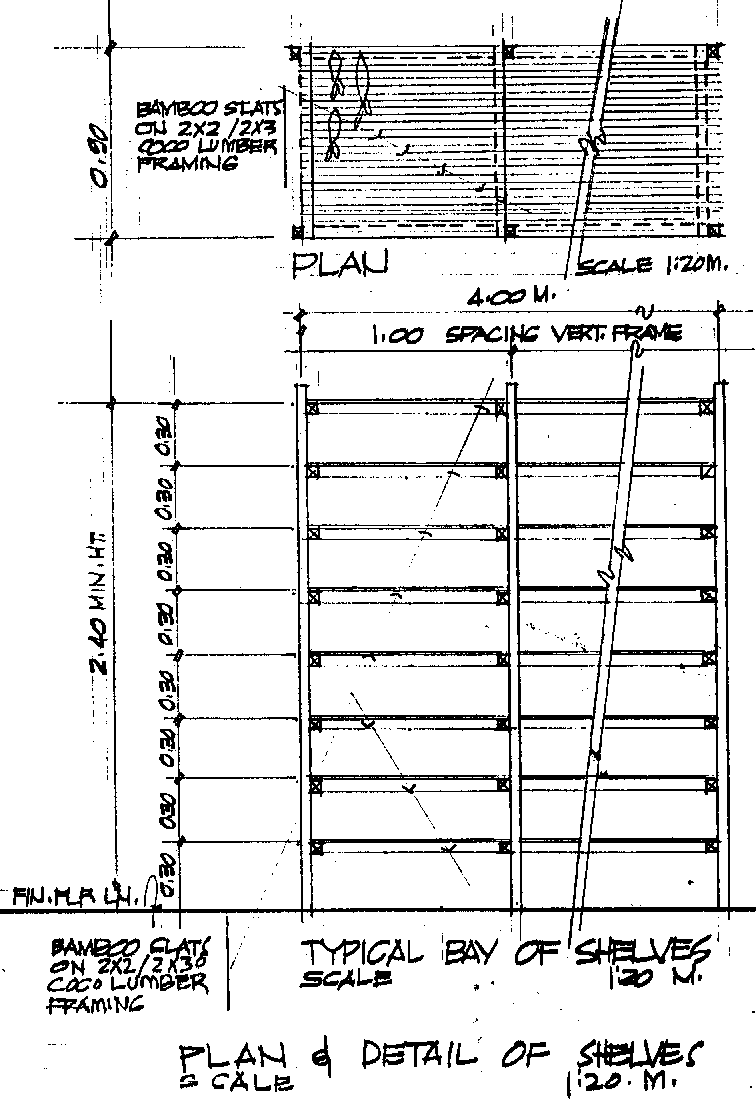 The drying process can be improved by setting up a bunkhouse for drying fish. This structure (Schematic Diagrams are presented in Figure 2) can serve dual purposes: working area for splitting and cleaning of fish and drying area. It utilizes indigenous materials and may be constructed by modules of 6 meters by 4 meters per unit depending on the target production volume.