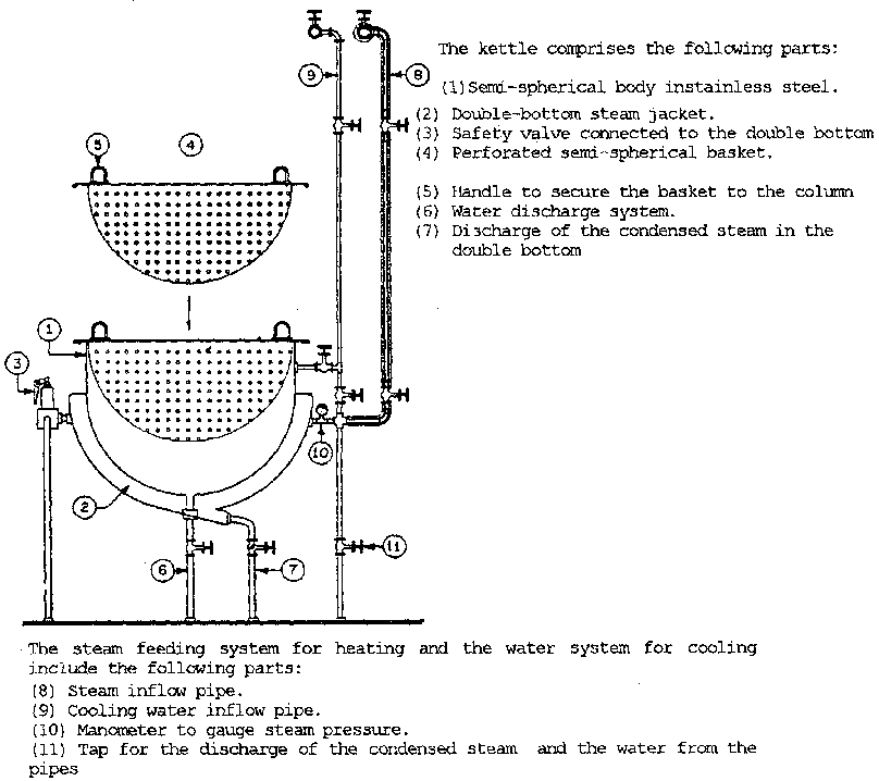 In the specific case of a semi-industrial plant, the pots will be replaced by steam kettles, heating will be provided by a steam-boiler, and a small press as well as an autoclave will be available. A list of additional equipment that must be installed in a small-scale industrial plant is provided below.