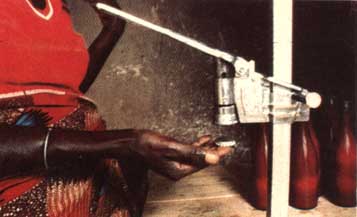 Picture 16. The crown cork being placed under the capper's magnet (TCP/BKF/6658 Project)