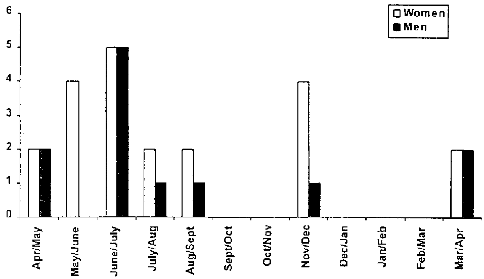 assess workload of women and men by seasonality |