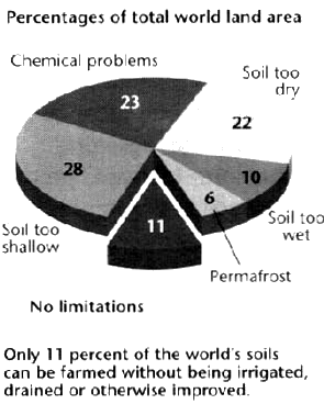 Poorly managed irrigation can lead to salinization and waterlogging. Some 30 million hectares of irrigated Land have been severely damaged by poor drainage and accumulation of salt in the soil.