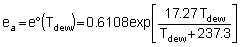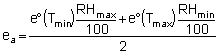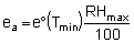 e°(Tmin) = 0.6108 exp[17.27(15)/(15 + 237.3)] |