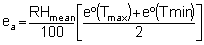 Values of saturation vapour pressure as a function of air temperature are given in Annex 2 (Table 2.3). Due to the non-linearity of the above equation, the mean saturation vapour pressure for a day, week, decade or month should be computed as the mean between the saturation vapour pressure at the mean daily maximum and minimum air temperatures for that period: