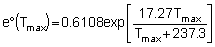 e°(Tmax) = 0.6108 exp[17.27(24.5)/(24.5 + 237.3)] |
