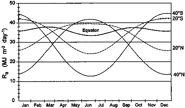 In July, the estimated solar radiation, Rs, is 22.3 MJ m-2 day-1 | |||