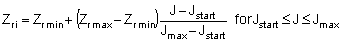 Zr i = Zr min when J < Jstart, and Zr i = Zr max when J > Jmax