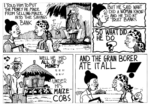 When a small-scale farmer saves money, his primary concern is that of safety. An important question which an extension worker must try to answer is whether the local financial institutions are safe. If such an institution collapses, it will result in a long-lasting mistrust towards the idea of saving.