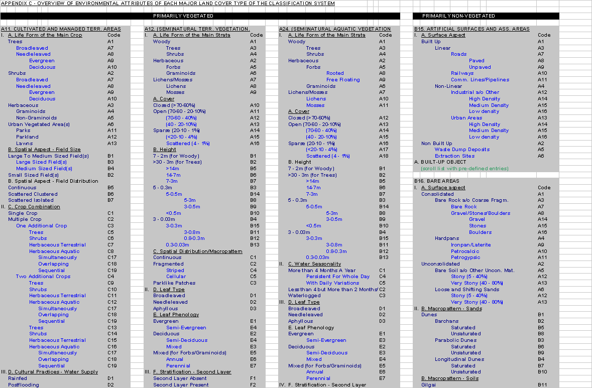OVERVIEW OF ENVIRONMENTAL ATTRIBUTES OF EACH MAJOR LAND COVER TYPE OF THE CLASSIFICATION SYSTEM
