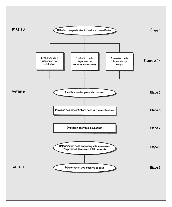 Étapes successives d'évaluation des risques créés par des pesticides entreposés de manière inadéquate