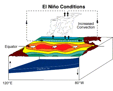 a phenomenon that occurs when sea-surface temperatures rise in the eastern