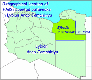 Before 1999, the latest reported outbreaks in North Africa were chronologically as follows: Egypt, in March 1997; Libyan Arab Jamahiriya, in January 1994 (two outbreaks in Ejbadia region, in the western part of the country); and Tunisia, in August 1994.