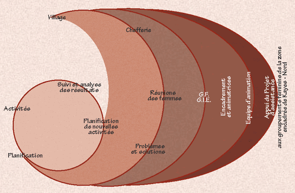 Ces différentes étapes se proposaient de susciter de nouveaux comportements et de trouver des réponses novatrices sans pour autant bouleverser la situation ni susciter de conflits. Par ailleurs, elles prenaient en compte les différents aspects de la promotion féminine en les intégrant à la logique globale du village.