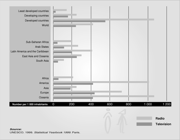 FIGURE 3: Numbers of radio and television receivers in selected regions and groups of countries