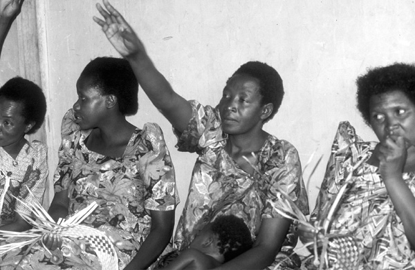 Dans un village ougandais, des femmes discutent les problèmes de la coopérative et les solutions possibles