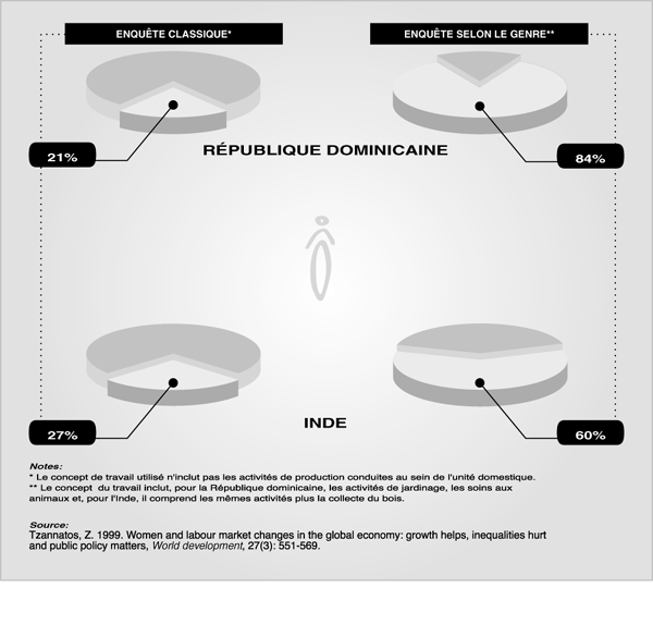 Devant ces paradoxes, la conciliation des dimensions macroéconomique et microéconomique est une voie à explorer pour trouver des réponses aux questions de la réduction des inégalités, aux attentes de la société et à la demande croissante de participation des populations (hommes et femmes) au développement. Pour trouver un meilleur équilibre entre ces deux dimensions économiques et prendre les décisions en connaissance de cause, il est fondamental de disposer, entre autres, d'informations sur les ressources humaines, détaillées et différenciées par sexe, ainsi que sur leurs modes et moyens d'existence.