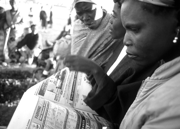 COMMENT COMBLER LES LACUNES D'INFORMATION? En Zambie, les cours du marché sont diffusés dans les journaux locaux - FAO/17821/A. CONTI En 1993, dans une province du nord de la Zambie, une pièce de théâtre fut jouée par les villageois à l'ouverture d'un atelier de trois jours sur la sécurité alimentaire et ses problèmes. Elle commençait par un chant «Les personnes pour qui je produis ont des vêtements, alors que moi, le seul qui travaille dur, je me retrouve nu» («Abo ndimina balafwala ne mwine pamputi tutu»). Mise en scène au village, avec des personnages reconnaissables par tous, la pièce montrait, avec force, l'impact des institutions et des individus contribuant aux situations d'exploitation subies par les agriculteurs pauvres. La pièce de théâtre eut un résultat édifiant sur les discussions qui ont suivi. L'expérience a en effet démontré que le théâtre peut être un moyen efficace pour mieux comprendre les perceptions locales en matière de sécurité alimentaire, perceptions rarement statiques et souvent difficiles à appréhender. Dans l'exemple cité, la pièce de théâtre a mis clairement en évidence la nature «intégrée» des nombreuses décisions liées à la sécurité alimentaire et a permis l'obtention d'informations sur les solutions «maison» (ces dernières sont habituellement bien cachées à tout regard extérieur). Si nous pouvons mieux saisir ces solutions «maison», celles-ci pourront être sans aucun doute renforcées par des politiques. Le théâtre présente également l'avantage de pouvoir être enregistré, diffusé sur les ondes et distribué. La pièce de théâtre de Kapatu a été filmée et diffusée à la télévision zambienne, mais d'autres modes de diffusion peuvent être envisagés. Source: Extrait de Johan Pottier. 1999. Food security and gender: information gaps and how to plug them. Communication présentée lors du panel intitulé Politiques et planification paritaires: nature et portée. |