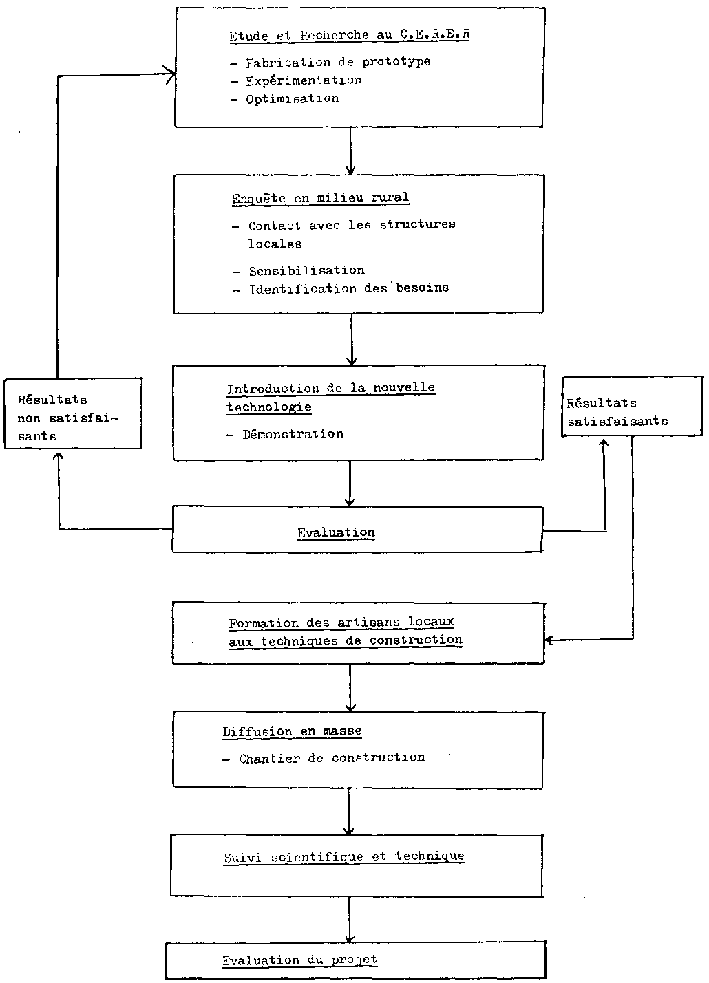 La démarche du C.E.R.E.R. ne consiste surtout pas à commercialiser les séchoirs solaires mais à favoriser leur promotion au niveau des populations directement intéressées par le problème de la conservation des aliments. Ceci se fait en général en s'appuyant sur une structure locale (coopérative, groupement de jeunes' associations de femmes ...) et de la manière suivante :