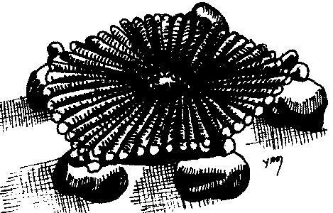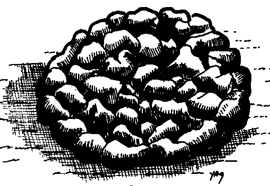Figure 12: Plate-forme de petit grenier à section circulaire. Peut être faite de trois, cinq ou neuf pierres suivant la taille du grenier.
